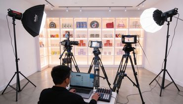We bring a full LIVE setup to your office, shop, warehouse, salon — wherever your products live. Multi-camera, clean audio, flattering light, and a simple set that looks intentional on camera. You host and sell; we handle the production.